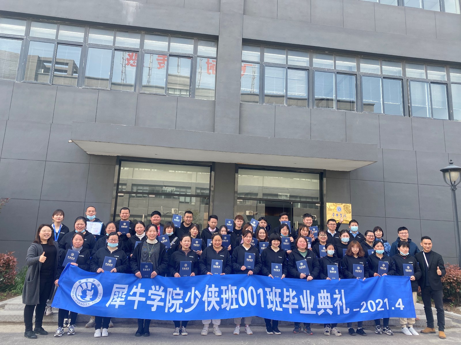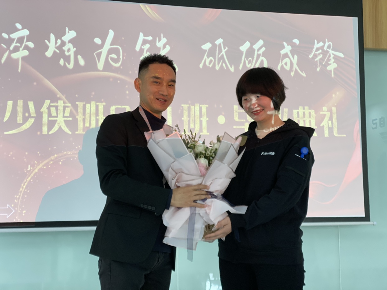 最后,宋小東強調(diào),要學會善待自己,善待同事,祝愿犀牛學院少俠班001班畢業(yè)生在新的崗位上,新的環(huán)境中能夠不斷進步,取得更大的成就。在全場的掌聲下,宋小東為畢業(yè)生頒發(fā)畢業(yè)證書并合影留念。