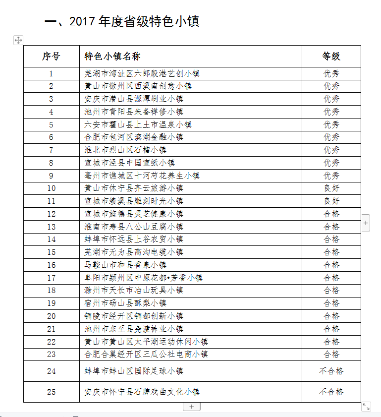 2017、2018年度省級(jí)特色小鎮(zhèn)創(chuàng)建期滿